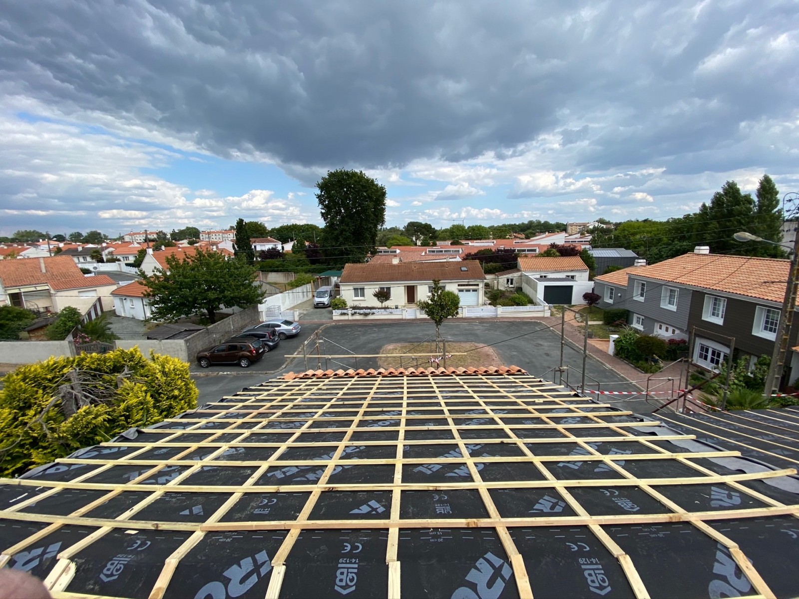Après toutes ces étapes nous avons installé des nouvelles tuiles type GR 13 Monnier Des tuiles de fabrication française une entreprise leader du marché.