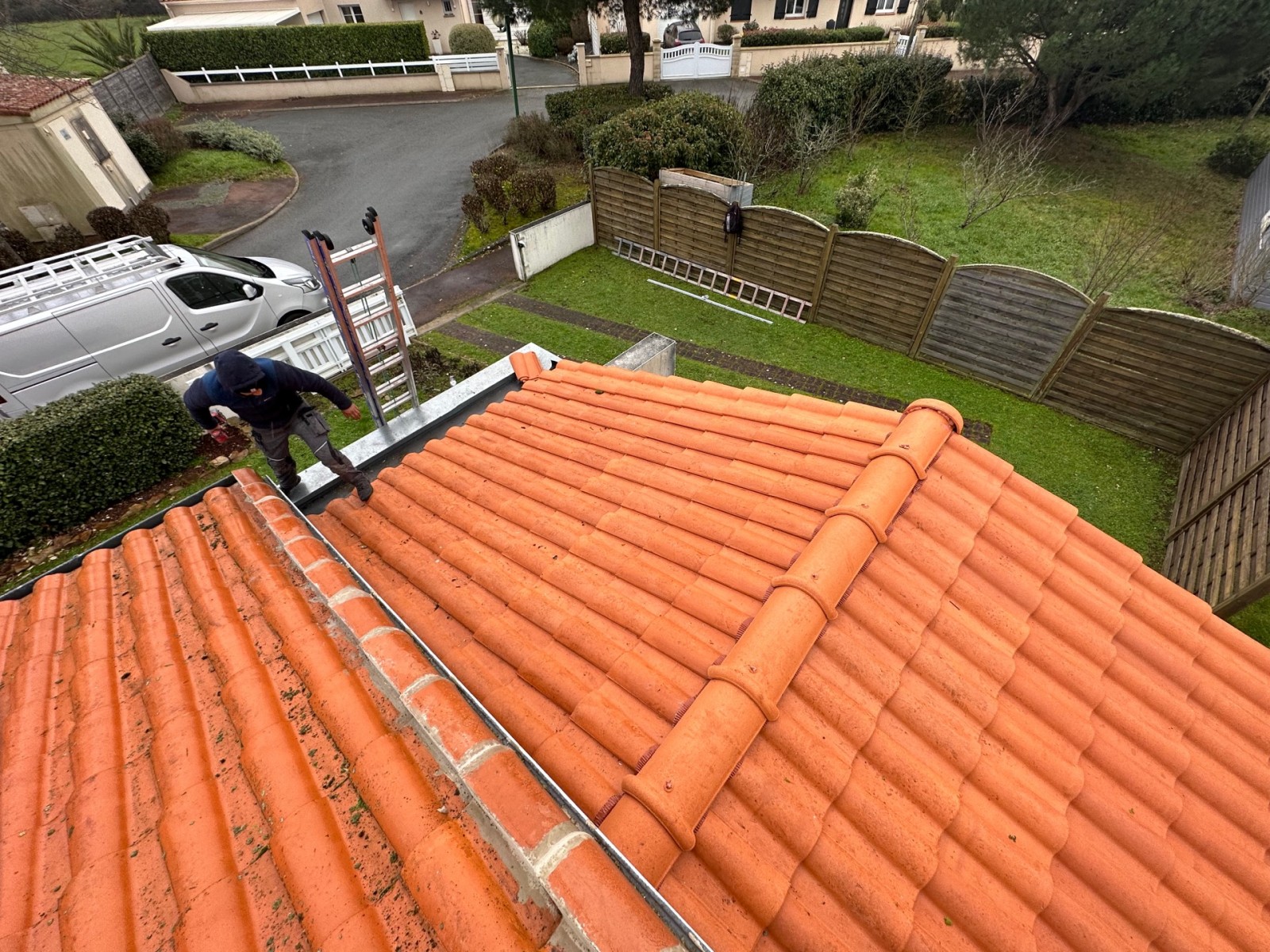 Nous avons ensuite retiré la couverture existante et effectué les réparations nécessaires à la structure sous-jacente. Nous avons installé une nouvelle sous-toiture pour une étanchéité optimale et posé les nouvelles tuiles en terre cuite pour une finition esthétique durable.