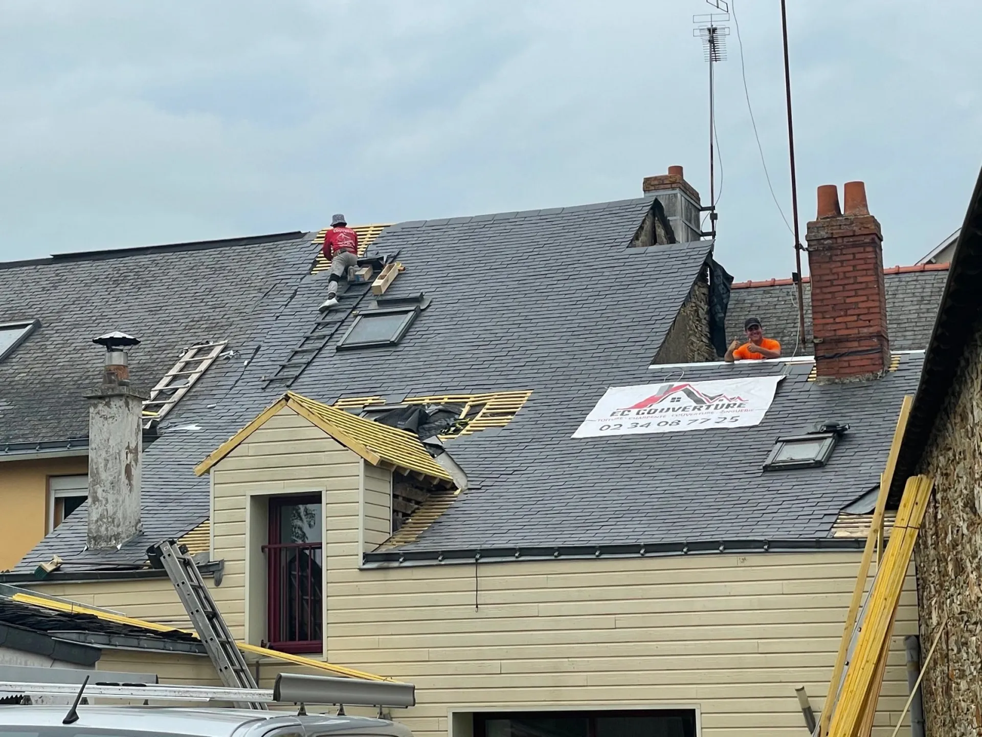 - L’étape de la mise en place des ardoises est très importante nos artisans Couvreurs on alors procéder à la mise en place des ardoises et à son façonnage.