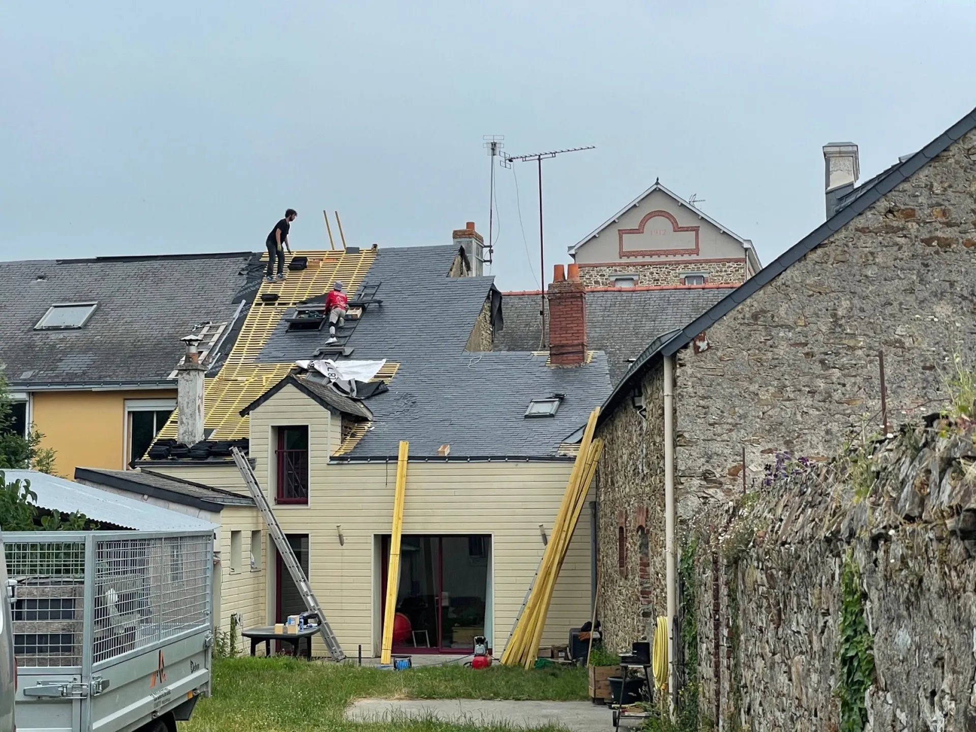 - Nous avons remis en place des nouveaux Liteau Bois traité sapin épicéa pour maintien des nouvelles ardoises.