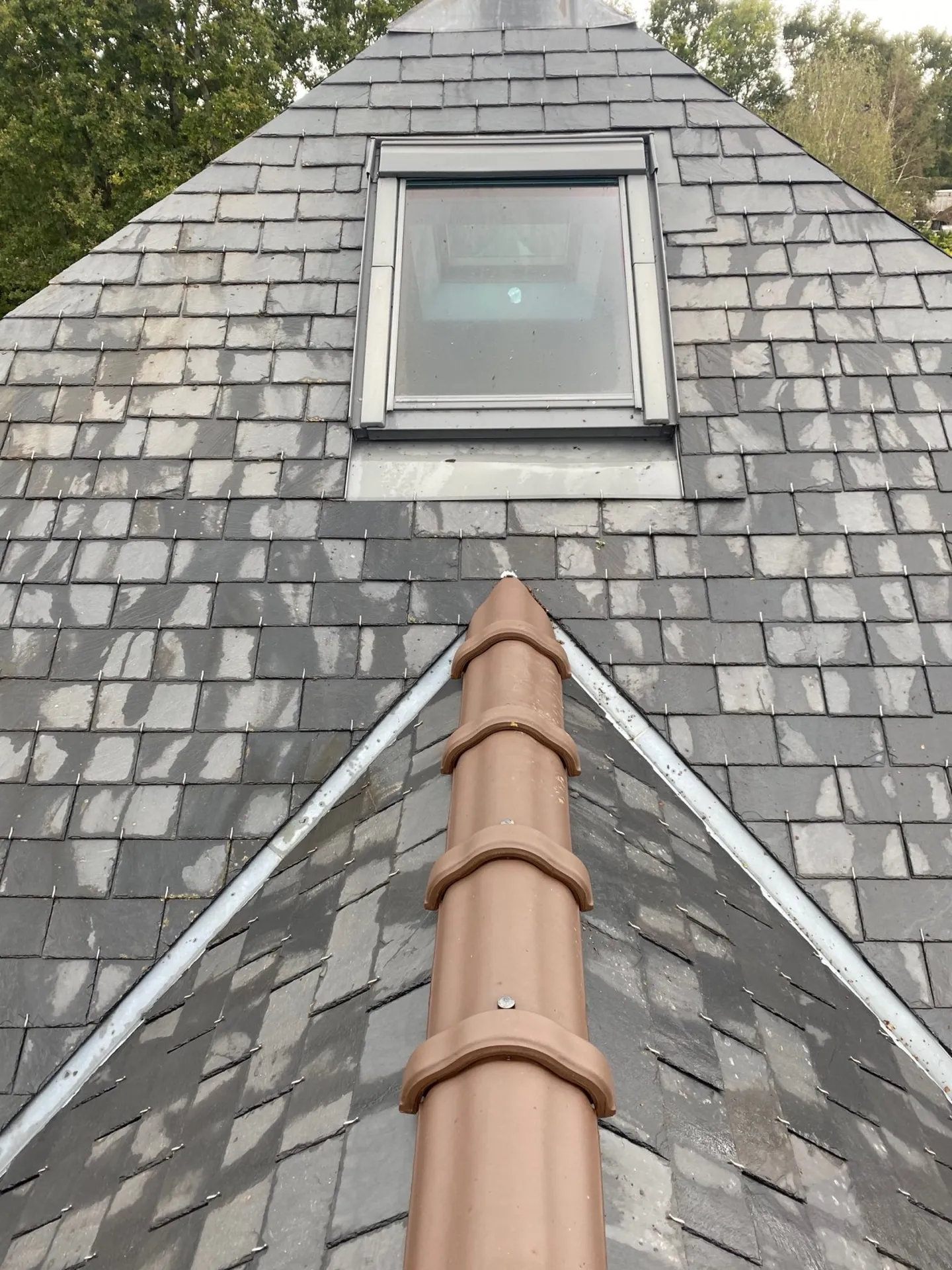 - Après l’application de traitement curatif nous avons brossé toutes les mousses présentes sur la couverture et nettoyer les gouttières.