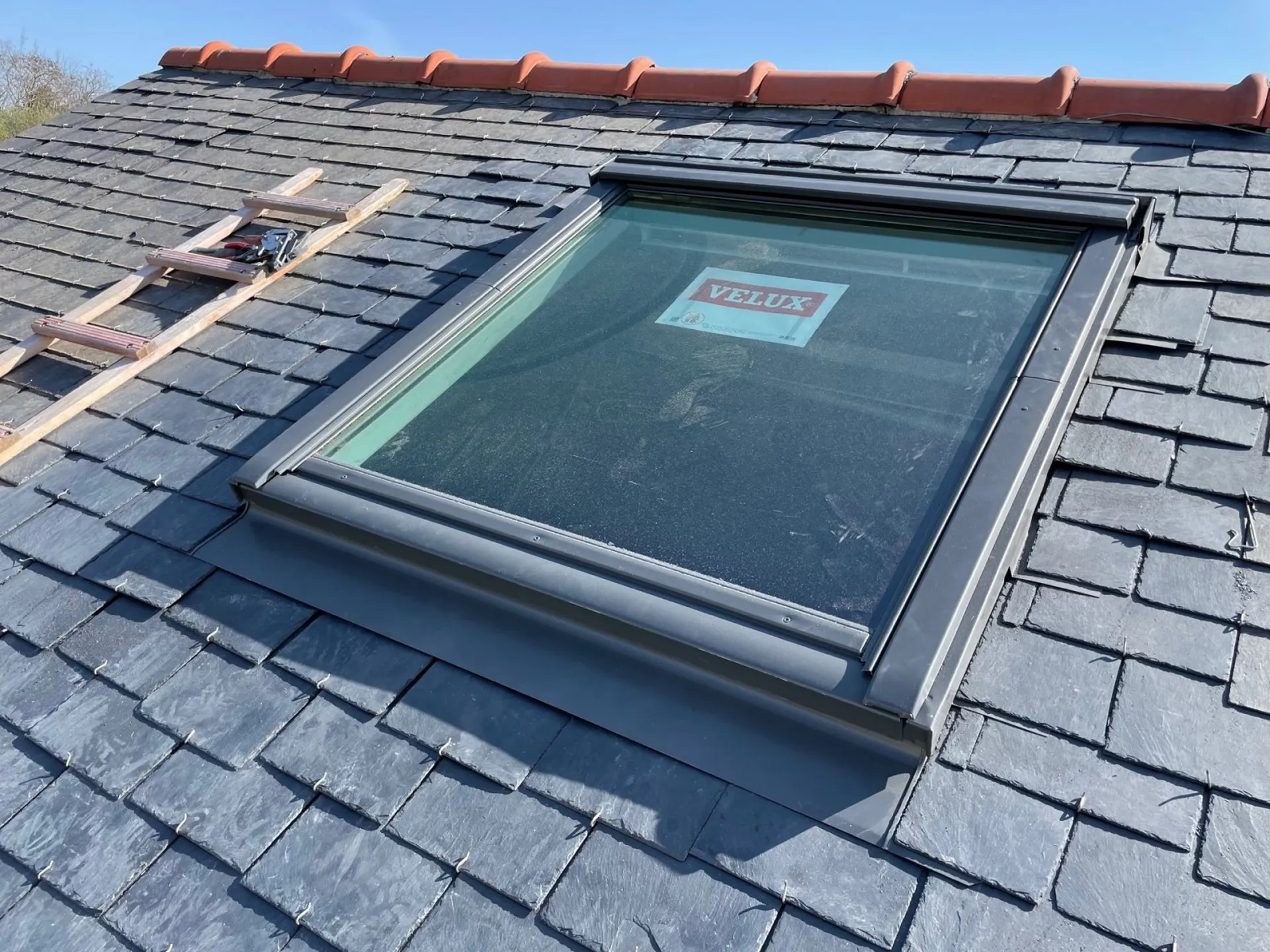 - Comme vous pouvez le découvrir sur les photos ci-joint une de nos réalisations sur un Velux 114x118 raccord ardoise.